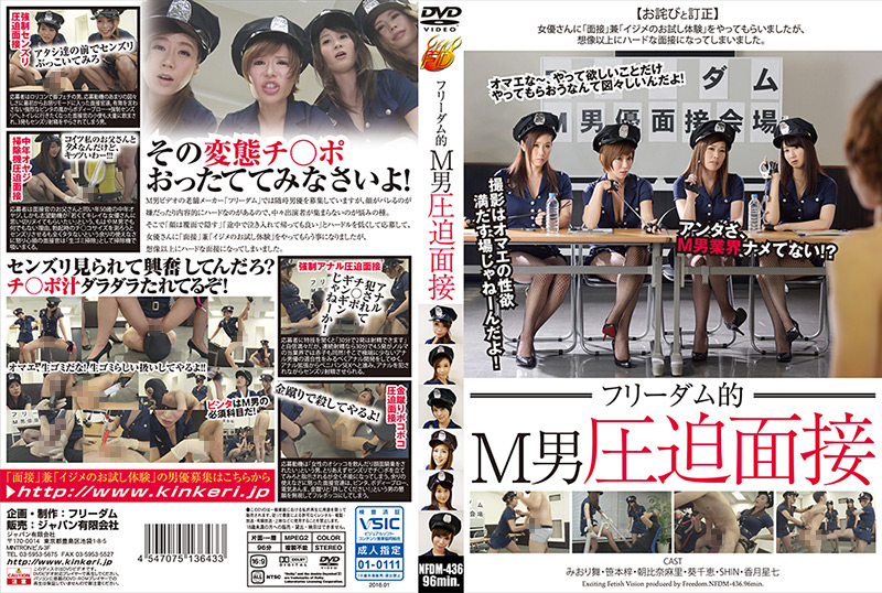 M男ビデオの老舗メーカー「フリーダム」では随時男優を募集していますが、顔がバレるのが嫌だったり内容的にハードなのがあるので、中々出演者が集まらないのが悩みの種。そこで「顔は覆面で隠す」「途中で泣き入れて帰っても良い」とハードルを低くして応募して、女優さんに「面接」兼「イジメのお試し体験」をやってもらう事になりましたが、想像以上にハードな面接になってしまいました