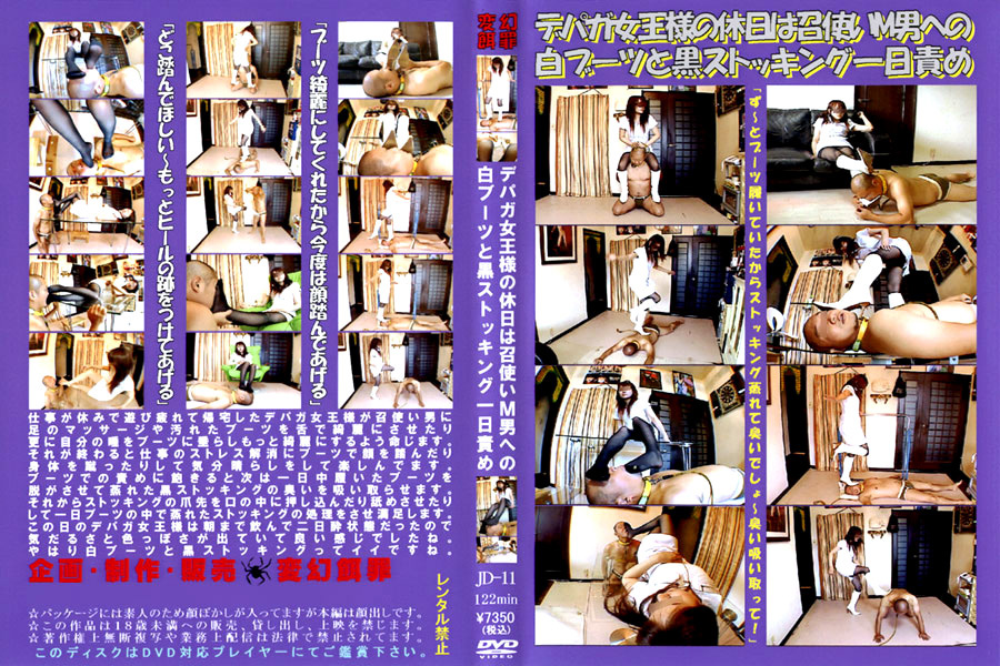 仕事が休みで遊び疲れて帰宅したデパガ女王様が召使い男に足のマッサージや汚れたブーツを舌で綺麗にさせたり、更に自分の唾をブーツに垂らしもっと綺麗にするよう命じます。それが終わると仕事のストレス解消にブーツで顔を踏んだり、身体を蹴ったりして気分晴らしをして楽しんでます。ブーツでの責めに飽きると次は一日中履いたブーツを脱がさせて蒸れた黒ストッキングの臭いを吸い取らせます。それからストッキングの爪先を口の中に押し込んだり舐めさせたりして一日ブーツの中で蒸れたストッキングの処理をさせ満足します。この日のデパガ女王様は朝まで飲んで二日酔状態だったので気だるさと色っぽさが出ていて良い感じでしたね。彼女は先月でデパガを辞め新しくIT企業の社長秘書になり朝5時ぐらいまで働いてるほど超忙しくなったので残念ですが当分、もしくはもう撮影出来ないかもしれません。 ※本編顔出し