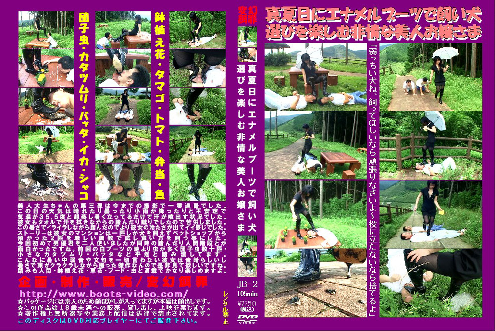 美人大生ちゃんの第三弾は今までの撮影で一番過酷でした。この日の天気は晴れたり曇ったり小雨が降ったりと不安定で気温が35.5度と超蒸し暑く、立ってるだけで汗が噴出す状況でした。彼女もタオルで汗を拭きながらの踏み蹴りでしたので苦労しましたね。しかしこんな真夏日にエナメルニーハイブーツで撮るなんてアホですね。ストーリーは彼女のマンションは一匹しか犬を飼えずペットショップから預かった2匹の厳しい調教で試し賢い方を飼う事にした。今回初めて男優君を二人使いましたが、同時に踏んだり人間階段とか面白かったですね。前回の白ブーツの時より虫が多く団子虫数十匹・小さなカタツムリ・バッタなど踏み潰してますが逃げ足が速くカメラ撮影は大変でした。こんなに暑い中弱音や文句を一切言わない彼女は素晴らしいし、暑さで頭がクラクラしながら撮った傑作なんので是非見て欲しいですね。踏みのバリエーションも人間・鉢植え花・草花・フード・虫と一本の中にコレだけ詰め込んで良いのでしょうか?なんかやり過ぎの様な気がしますね。 ※本編顔出し