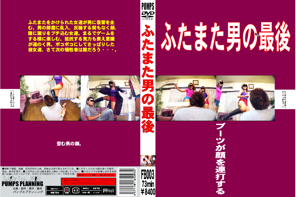 スポンサーリンク ふたまた男の最後 M男 2024.10.19 スポンサーリンク スポンサーリンク ■タイトル:ふたまた男の最後■カテゴリ:■メーカー:パンプスプランニング■発売元:PUMPS PLANNING■女優:■メーカーコメント:題名通りのふたまたをした男にマジ切れした女達の当然の行為。サッカーボールの様に男の顔や頭をブーツを履いたまま蹴る、蹴る。そして腹を蹴る、蹴る…。苦痛にうごめく男をあざ笑う彼女達。南無阿弥陀仏…。見所:2人・ブーツ・顔蹴り・腹蹴り・太股締め・腹パンチ・レザーパンツ。 ふたまた男の最後