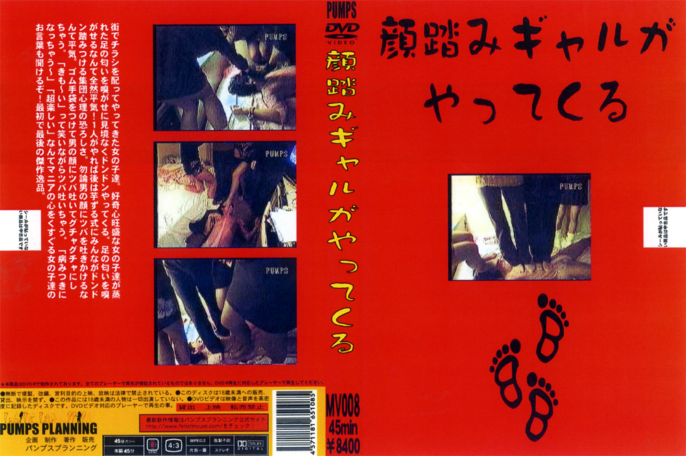 街でチラシを配ってやってきた女の子達。好奇心旺盛な女の子達が蒸れた足の匂いを嗅がせに見境なくドンドンやってくる。足の匂いを嗅がせるなんて全然平気!1人がやれば後は芋づる式にみんながドンドン踏みつける集団心理の恐ろしさ。勿論男の顔にツバを吐きかけるなんて平気。ゴム手袋を付けて男の顔にツバ吐いてグチャグチャにしちゃう。「きも~い!」って笑いながらツバ吐いちゃう。「超楽しい~」「病みつきになっちゃう~」なんてマニアの心をくすぐる女の子のお言葉も聞けるぞ!パンプスプランニング最初で最後の逸品。